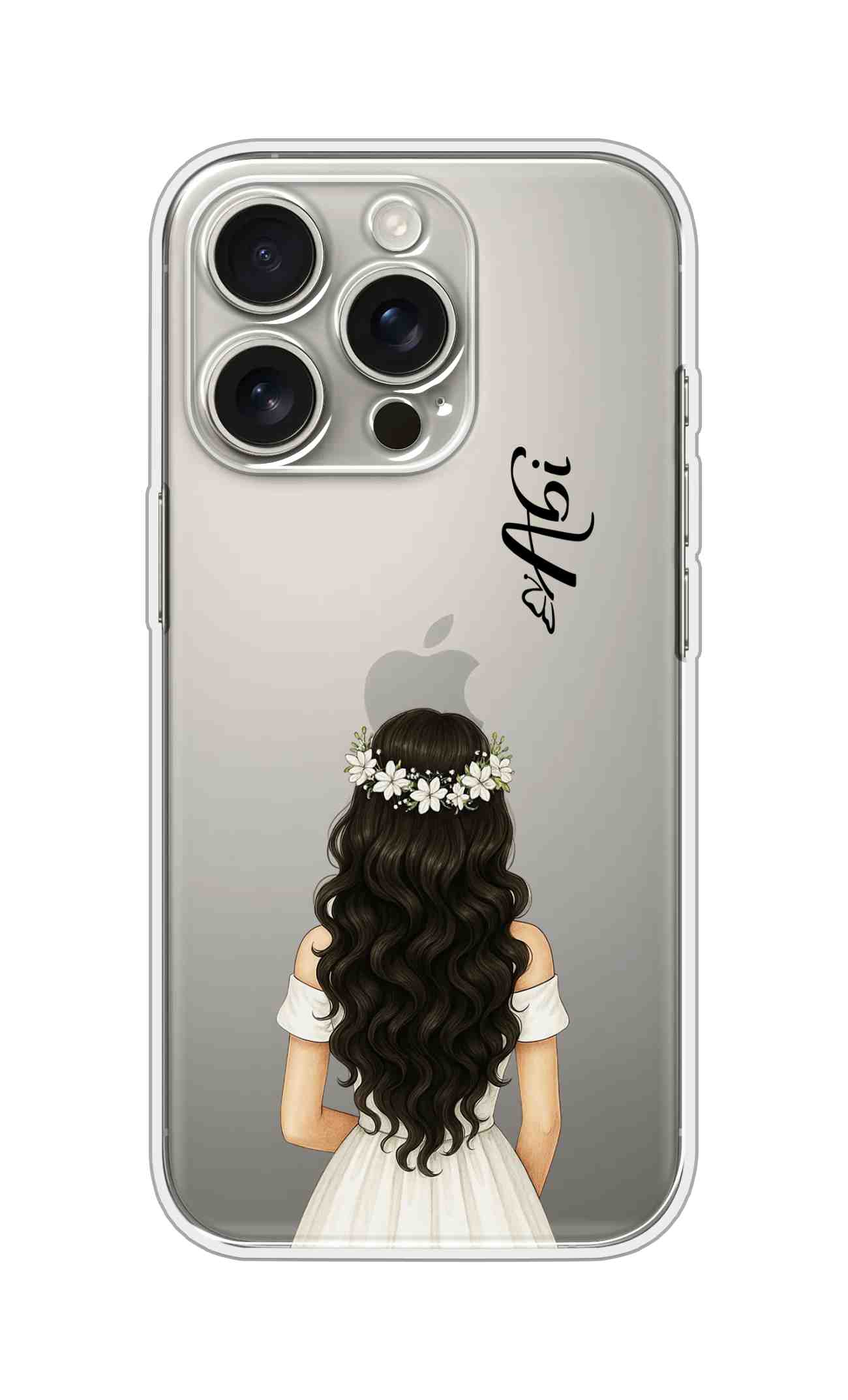 Elegant Long Hair Bridal Girl Aesthetic Custom Name Silicone Case