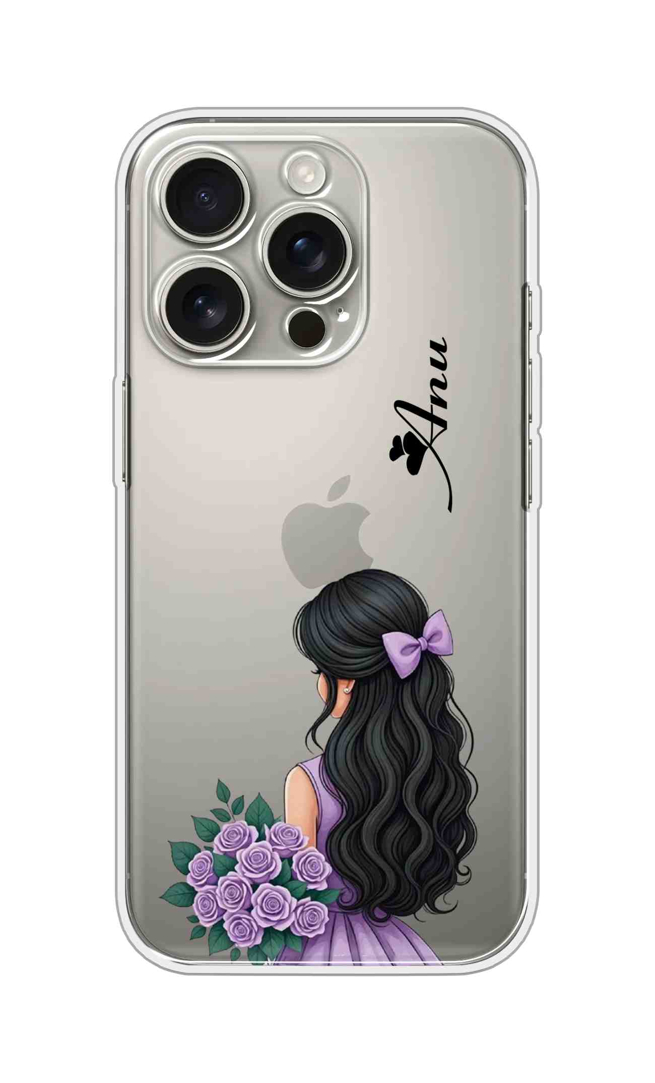 Purple Dress Girl Rose Bouquet Aesthetic Custom Name Silicone Case